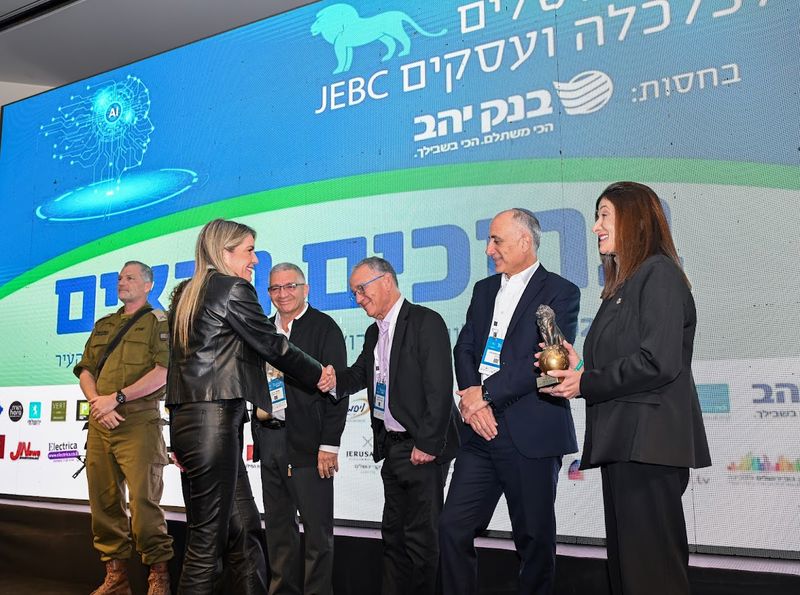נציגת יקבי ירושלים מקבלת את אות ההוקרה בכנס ירושלים לכלכלה ועסקים. צילום אבי חיון